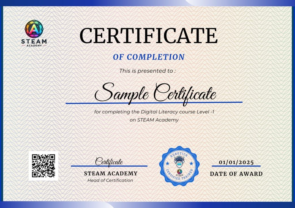 At STEAM Academy, we believe that every learning milestone deserves recognition. Our certification program is designed to validate your effort, demonstrate your skills, and open new doors for academic, personal, or professional growth.